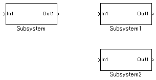 さらにその中に、サブシステムを3つ配置してください。名前は、「Subsystem」「Subsystem1」「Subsystem2」とします。(何も考えずに配置すると、こういう名前になると思います)