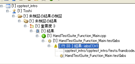 これを、C++testでユニットテスト実行する際、i= 1 の場合のみ確認しました。すると、こんな表示があらわれます。