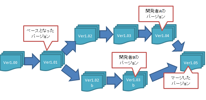 そんな時は、バージョン管理システムでもって、3点マージを行います。