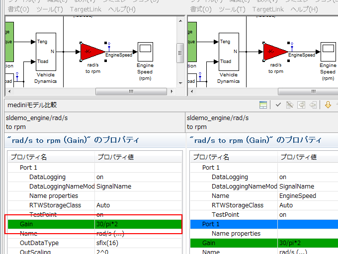 medini uniteは、差分表示はとても秀逸です。通常のテキスト用Diffとほぼ同じ使用感です。一方、マージ作業は、「現在のバージョン」「過去のバージョン」のいずれかを採用するか?の2択になります。この方式は、「どの部分がマージ済みか?」を確認しやすいのが利点ですが、2択では済まない場合には対応できません。そのため、差分表示させつつ、直接Simulinkを起動してマージ作業を行った方が良い場合もあるかと思います。