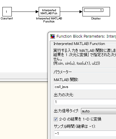 私「では、SimulinkモデルにそのJavaコードを埋め込んで直接走らせてはいかがでしょうか?Javaコードのデバッグにもなり、デモにも使えて一石二鳥だと思うのですが?」