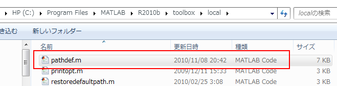 そのため、パス設定の結果は、MATLAB/MATLABのリリース名/toolbox/local/pathdef.m に保存されます。