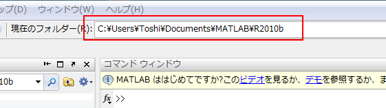 ステップ2:MATLABのスタートフォルダを、pathdef.mのあるフォルダに設定してやる